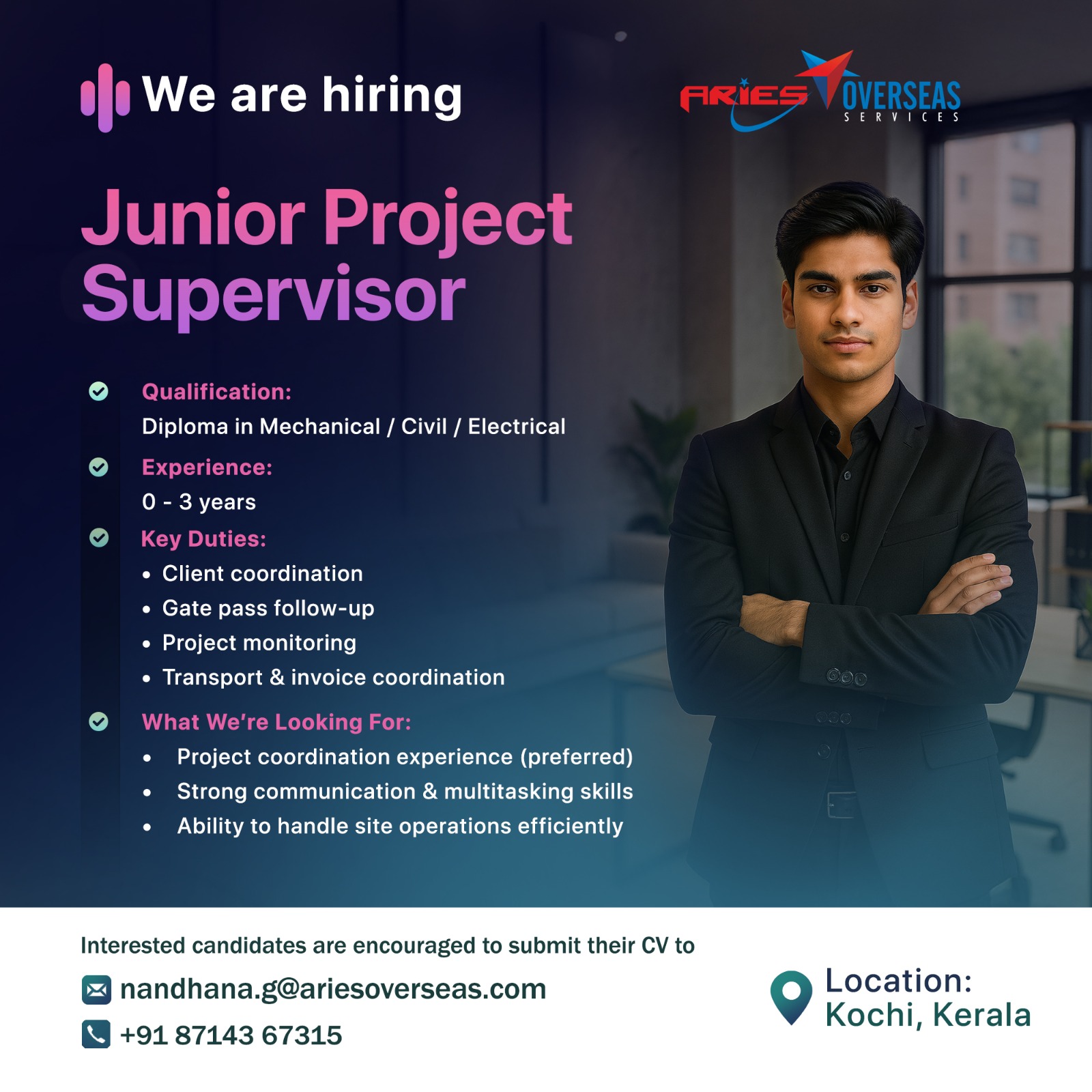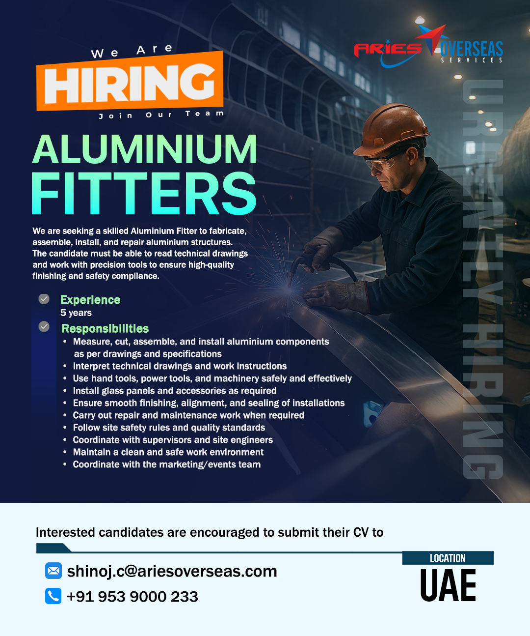 Aries Overseas Services is an International Overseas Recruitment / Human Resource Solutions Provider who actively search, recruit and screen candidates for employment. Aries Overseas Services hold a recruitment license issued by the Ministry of Overseas Indian Affairs with License No. B-0754/KER/PER/1000+/5/9121/2014.